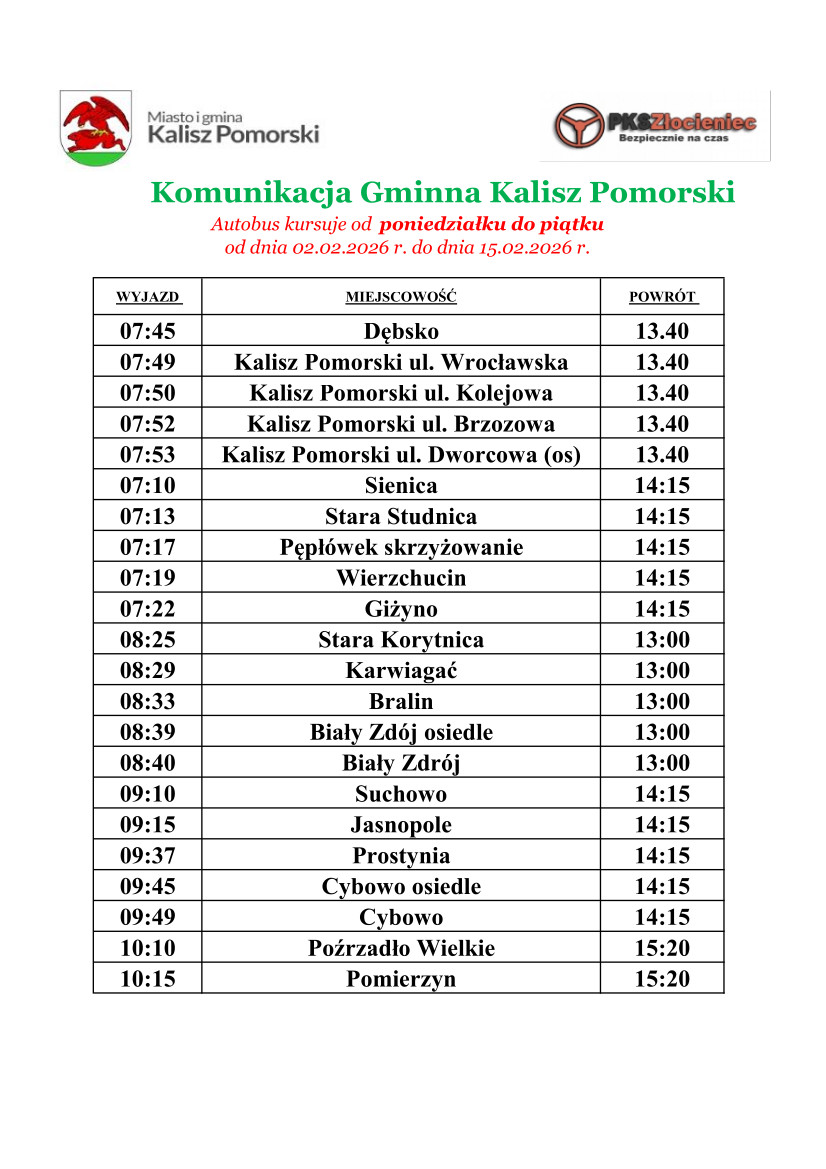 Aktualny rozkład jazdy- komunikacja gminna PKS Złocieniec
