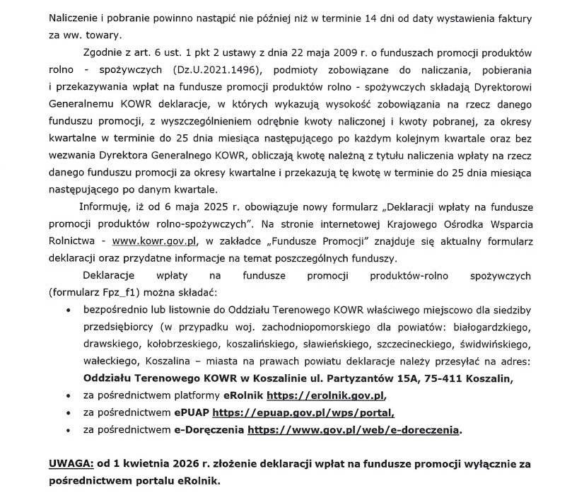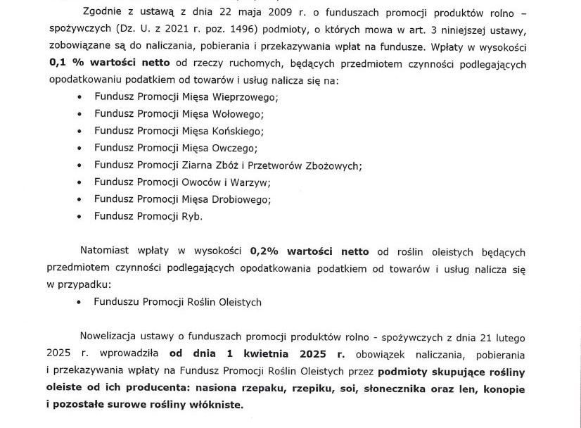 Fundusze promocji produktów rolno–spożywczych
