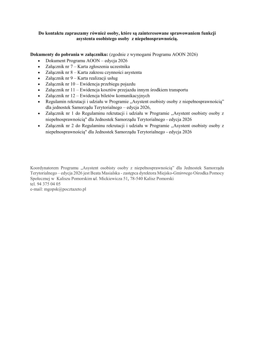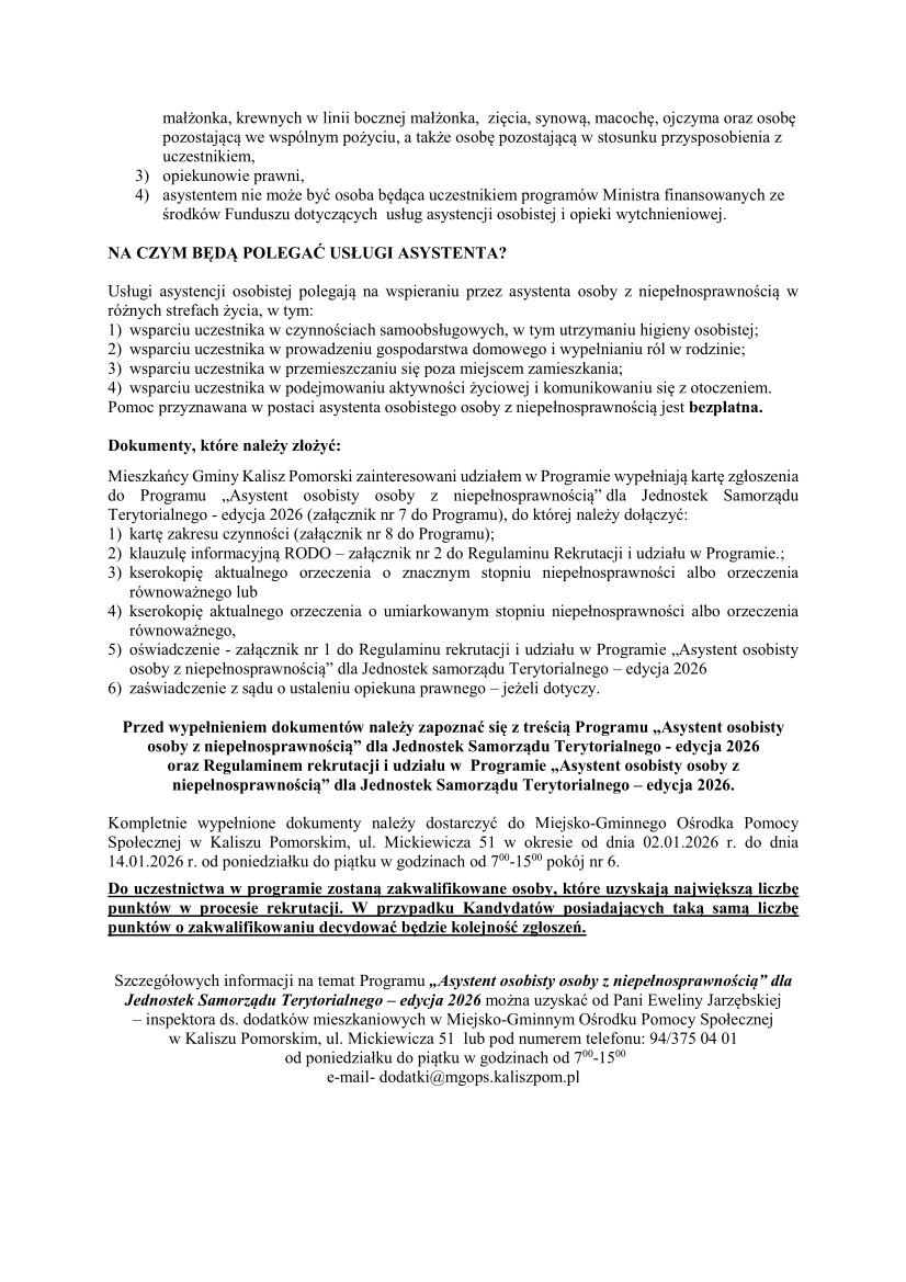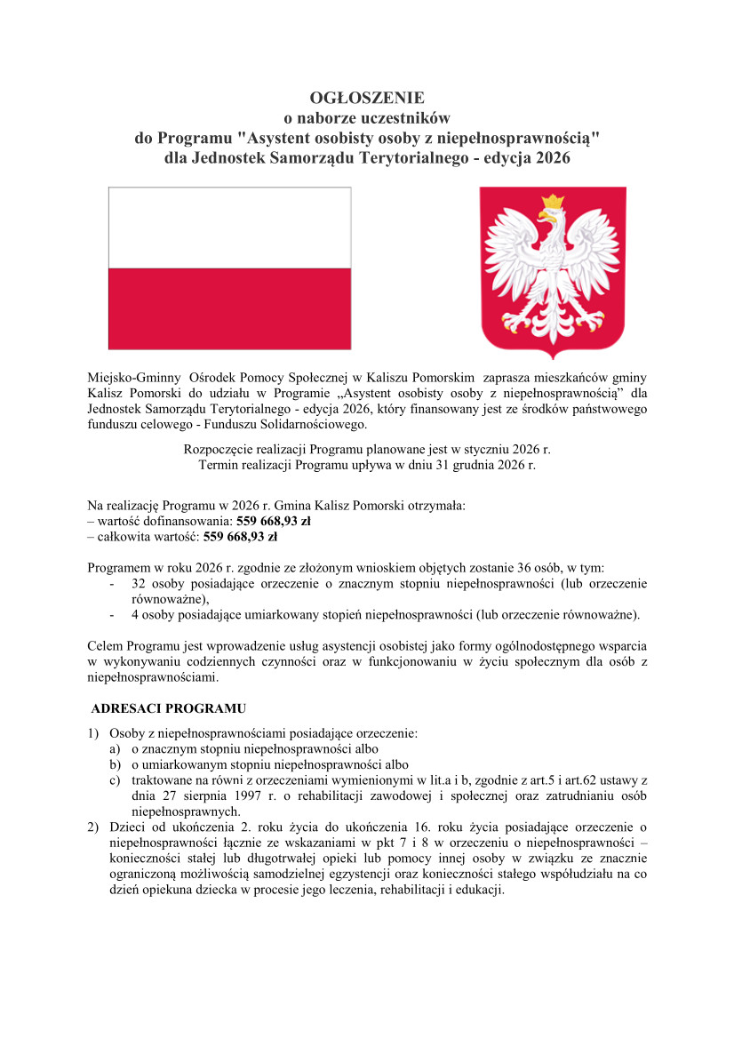OGŁOSZENIE o naborze uczestników do Programu "Asystent osobisty osoby z niepełnosprawnością" dla Jednostek Samorządu Terytorialnego - edycja 2026